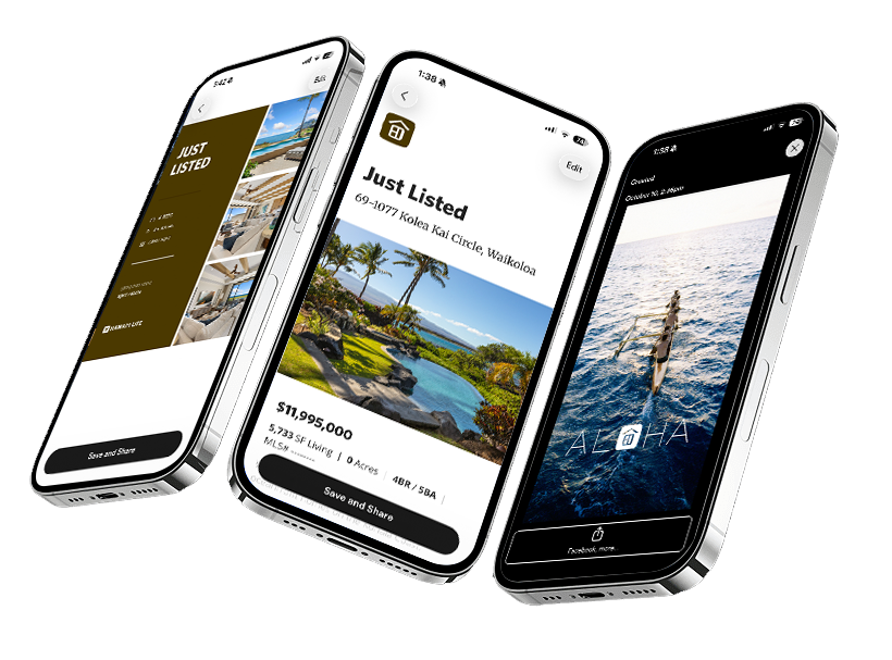 Create simple, Hawai‘i Life marketing for your listings and your business — all from one app.