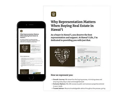 The printed listing presentation looks professional and polished in our custom Hawai’i Life kraft presentation folder.