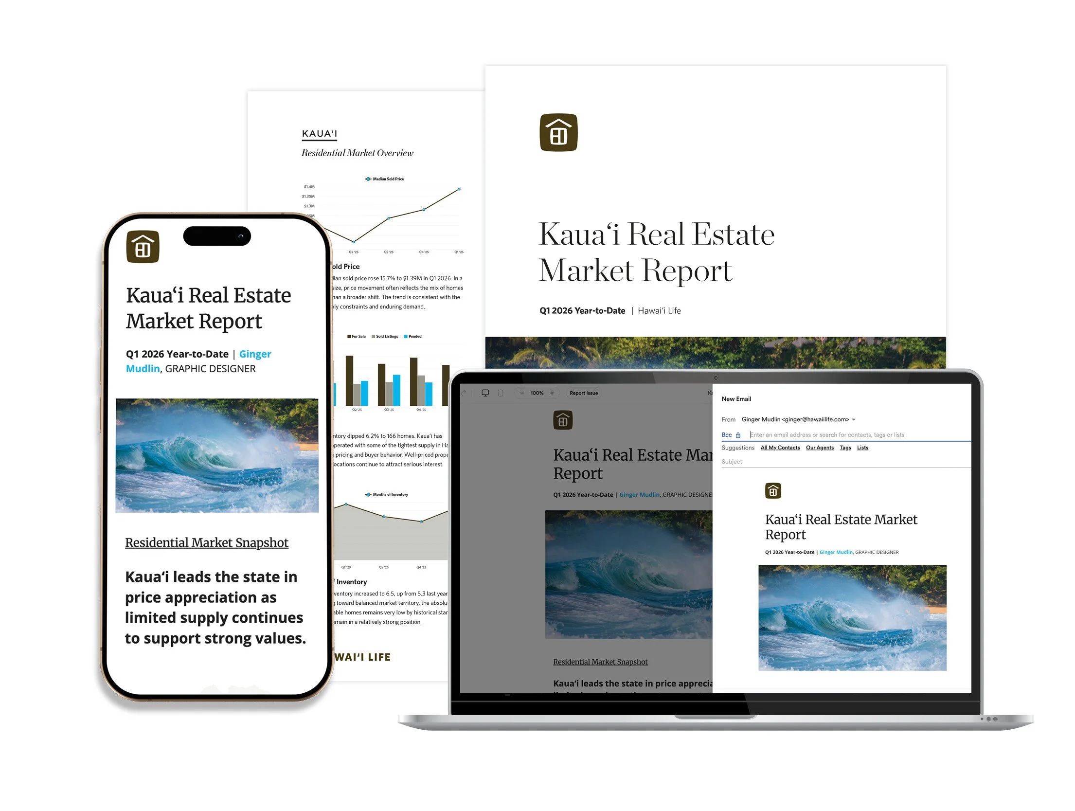 All digital Market Report tools, including emailers, PDFs, social graphics, and videos, are available instantly in The Hub. Simply log in, navigate to Marketing Center / Market Reports and select your report, customize, and share.