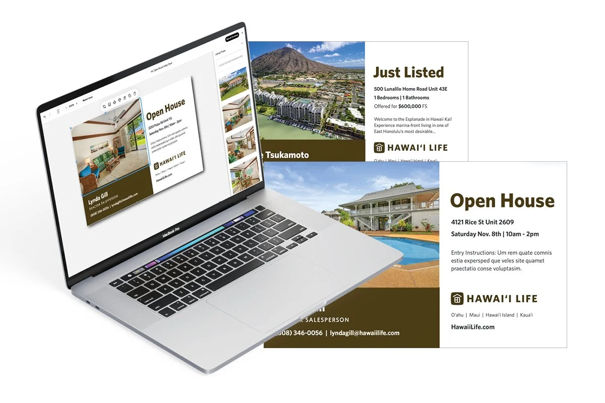Enhance your social media game with tailor-made social media assets. Whether it’s on your phone or on your desktop you’ll be able to quickly design branded content for your social media posts via your Hawai‘i life Hub